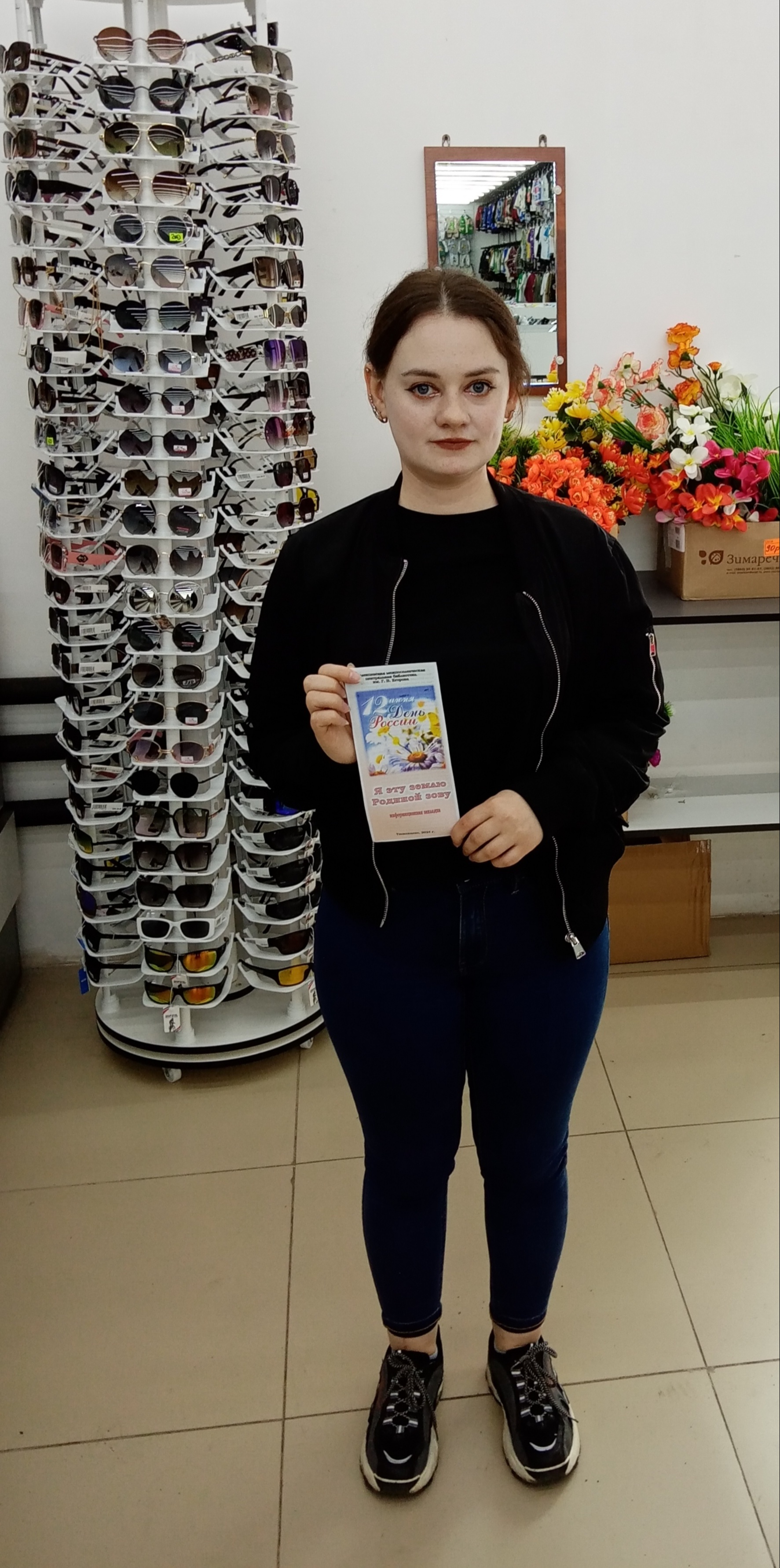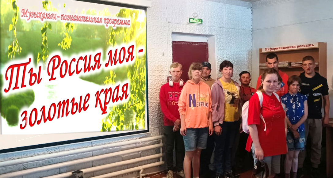 - Посетив музыкально-познавательную программу «Ты Россия моя – золотые края», пользователи библиотеки еще раз вспомнили, что Россия — это независимое государство, имеющее свою территорию, свой государственный язык, свои законы, своего всенародно избранного Президента, познакомились с историей праздника, вспомнили государственные и национальные символы России, великие страницы истории Родины, людей, которые её создавали и отстояли в грозный час. В ходе мероприятия звучали стихи и песни о России.