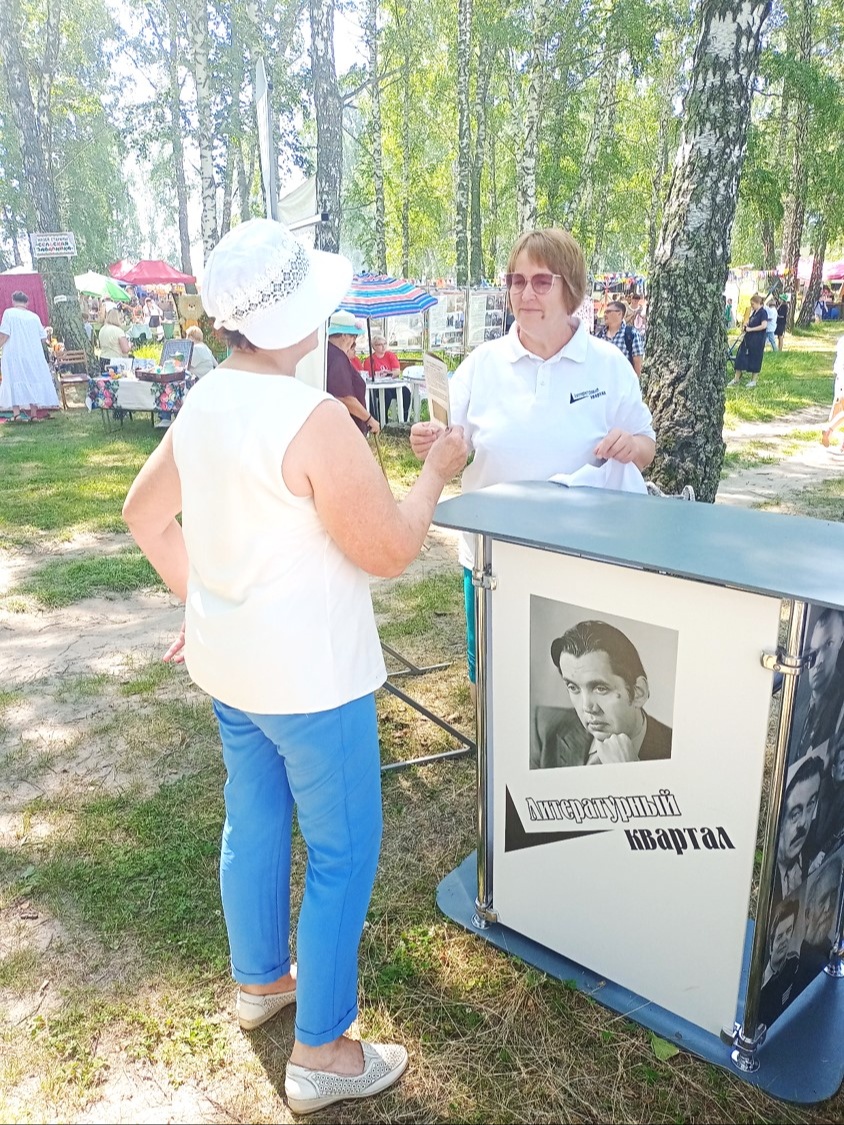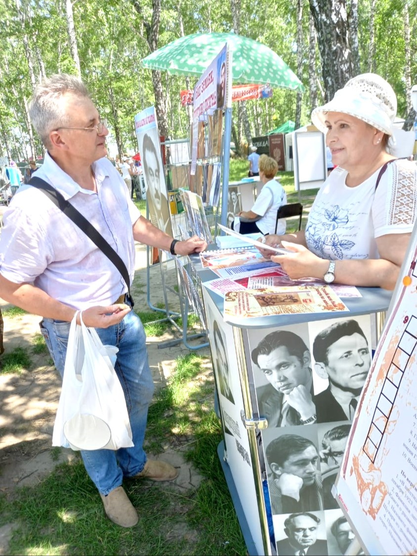Сотрудники отдела «ТМЦБ им. Г. В. Егорова»: Гурушкина О. И., Егорова В.В, Суворина А.А. в очередной раз приняли участие в проекте «Литературный квартал». По традиции мероприятие проходило на живописном берегу реки Лосиха, которое местные жители назвали «Яр Любви». Литературные чтения Алтая были комплексно представлены на интерактивной площадке «Литературный квартал», в котором приняли участие 11 территорий Алтайского края: Косиха, Тюменцево, Алтайское, Тогул, Павловск, Смоленское, Калманка, Ребриха; города: Камень-на-Оби, Новоалтайск, Барнаул.