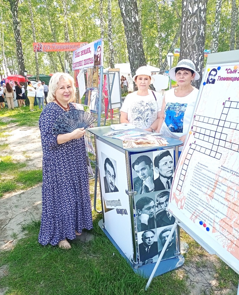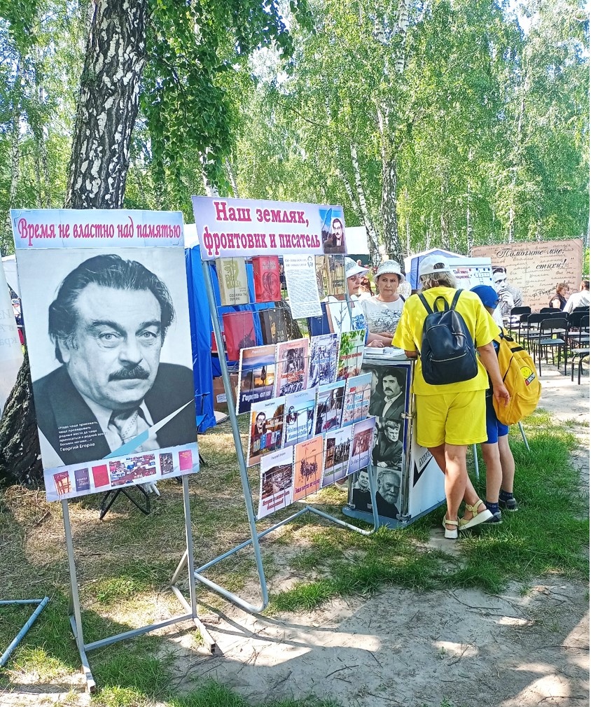 Каждый модуль «Литературного квартала» представлял собой выставочную экспозицию и сопровождался интерактивной программой. Единый стиль оформления оборудования, яркость и необычность привлекли большое количество посетителей. Тюменцевский район представил книжную выставку-экспозицию о писателе-земляке Георгии Васильевиче Егорове «Наш земляк, фронтовик и писатель». На выставке можно было найти информацию о его жизни и творчестве, познакомиться с его произведениями и воспоминаниями родных и близких Г. В. Егорова. Также гостям нашей литературной площадки было предложено принять участие в разгадывании кроссворда «Сын земли Тюменцевской», показать свою эрудицию, смекалку, а сотрудники библиотеки получили позитивные эмоции от того, что наш земляк и его творчество популярно и знакомо многим жителям Алтайского края и вызывает неподдельный интерес. Желающих поучаствовать в разгадывании кроссворда было много. Все участники получали на память закладку-магнитик с фотографией писателя и буклет «100 лет писателю Георгию Егорову» — это давало право на участие в конкурсе и возможность получить библиотечку книг Алтайских авторов. За участие в литературном фестивале имени Роберта Рождественского отдел «ТМЦБ им. Г. В. Егорова» был награжден благодарственным письмом оргкомитета. В ходе работы литературного квартала завязывалось общение и интересные знакомства, происходил обмен контактами и полезной информацией. Это мероприятие зарядило нас положительными эмоциями и желанием снова посетить это прекрасное и живописное место — Косихинский «Яр Любви».