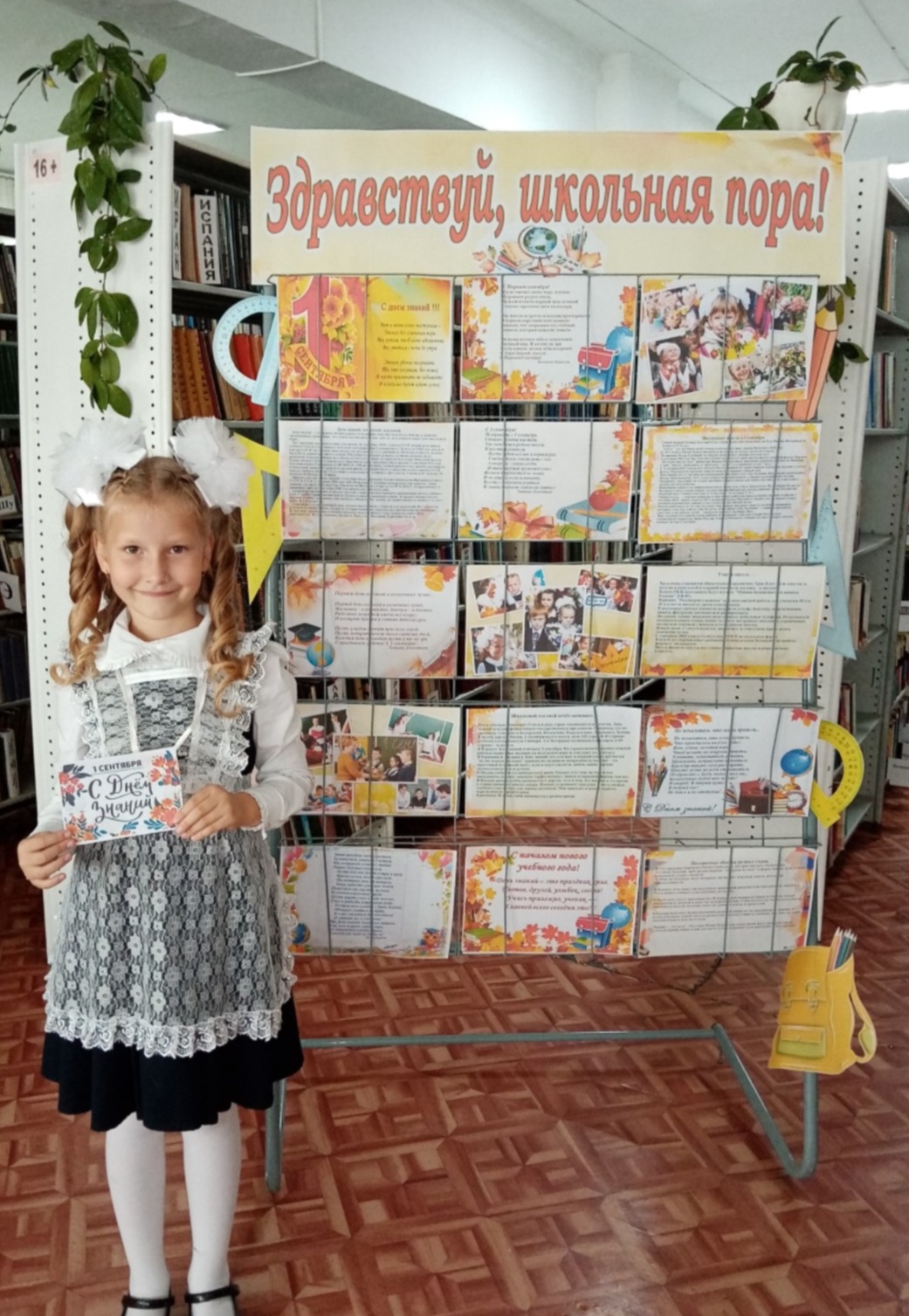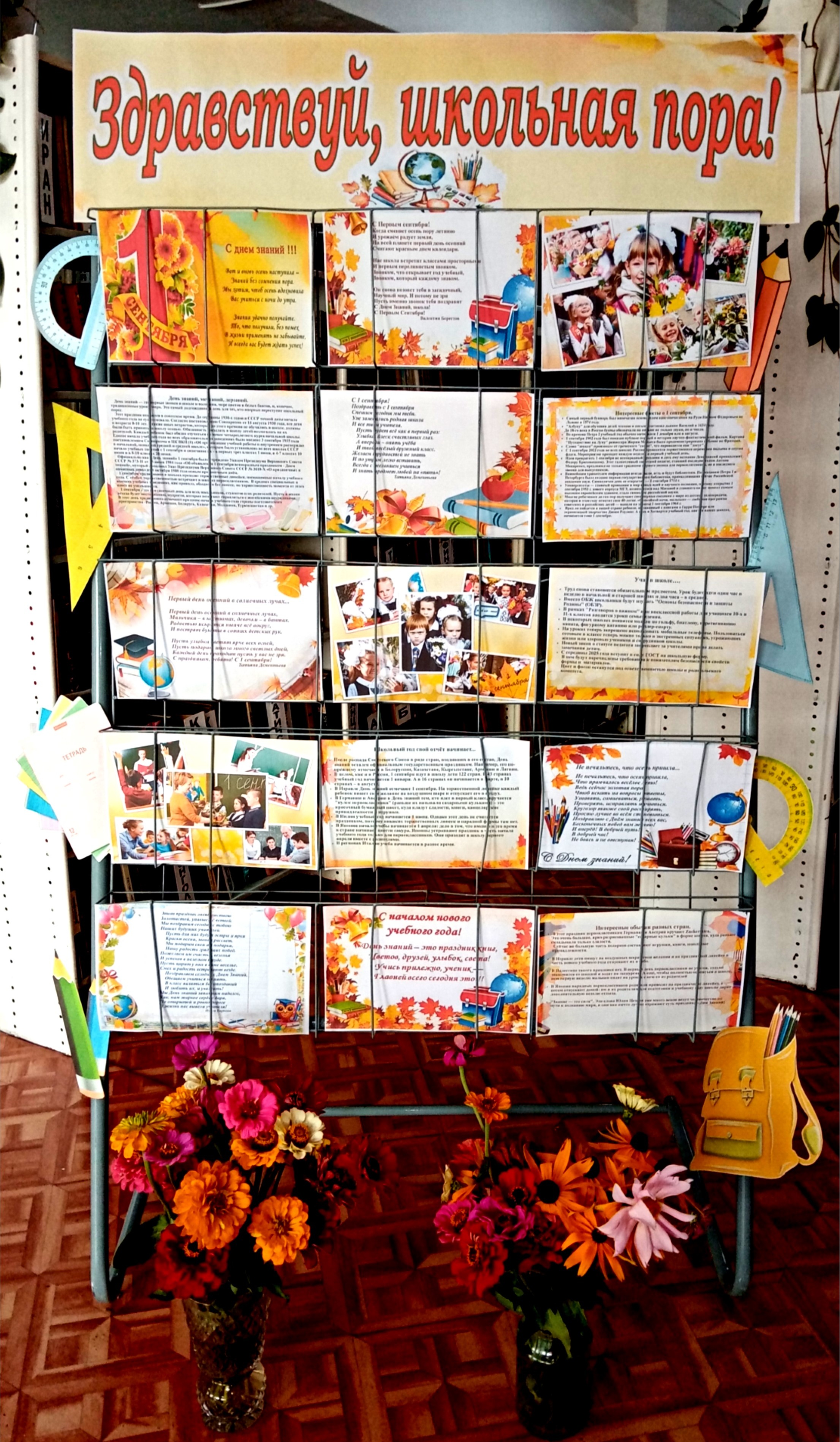 Ко Дню знаний сотрудники библиотеки подготовили для своих читателей выставку – праздник «Здравствуй, школьная пора!». На выставке был представлен информационный материал, дающий ответы на многие вопросы: об истории праздника, любопытные факты, нововведения в образовательном процессе. Интерес у пользователей вызывали информационные листы, подготовленные сотрудниками библиотеки: «День знаний, дерзаний, мечтаний», «Учат в школе...», «Здравствуй, к знаниям дорога!».