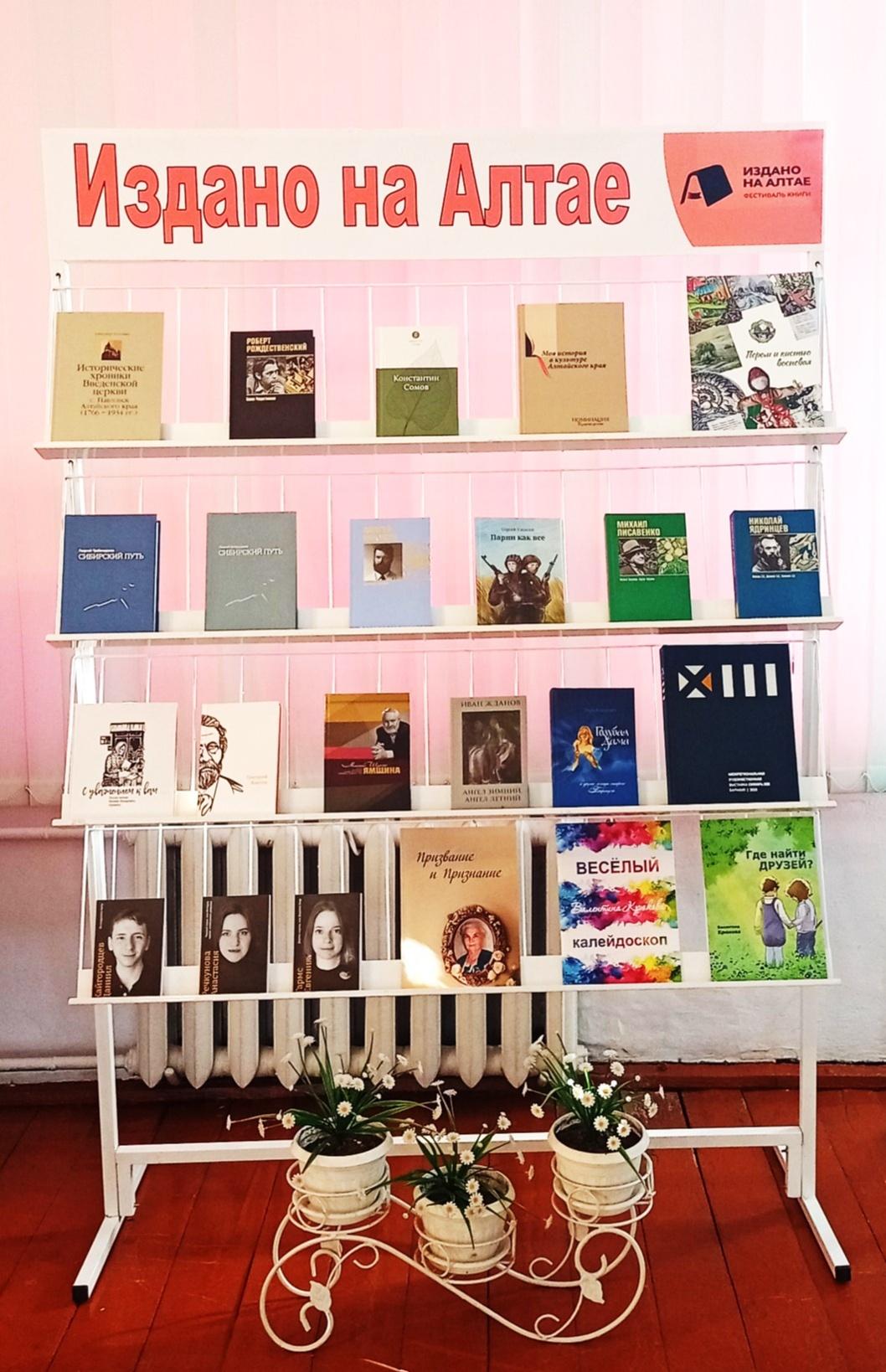 На книжной выставке-презентации «Издано на Алтае» представлены книги алтайских авторов, изданные в 2024 году и поступившие в фонд нашей библиотеки. Вниманию пользователей представлено книги, вышедшие в различных издательствах региона. Среди них — фотоальбом «Пером и кистью воспевая», сборник воспоминаний ветеранов культуры «Моя история в культуре Алтайского края», сборник исследований Коленько А. П. «Исторические хроники Введенской церкви с. Павловск Алтайского края», книги серий: «Литературное наследие Алтая», «Алтай. Судьба. Эпоха», «Молодой голос Алтая» и других губернаторских издательских проектов.
