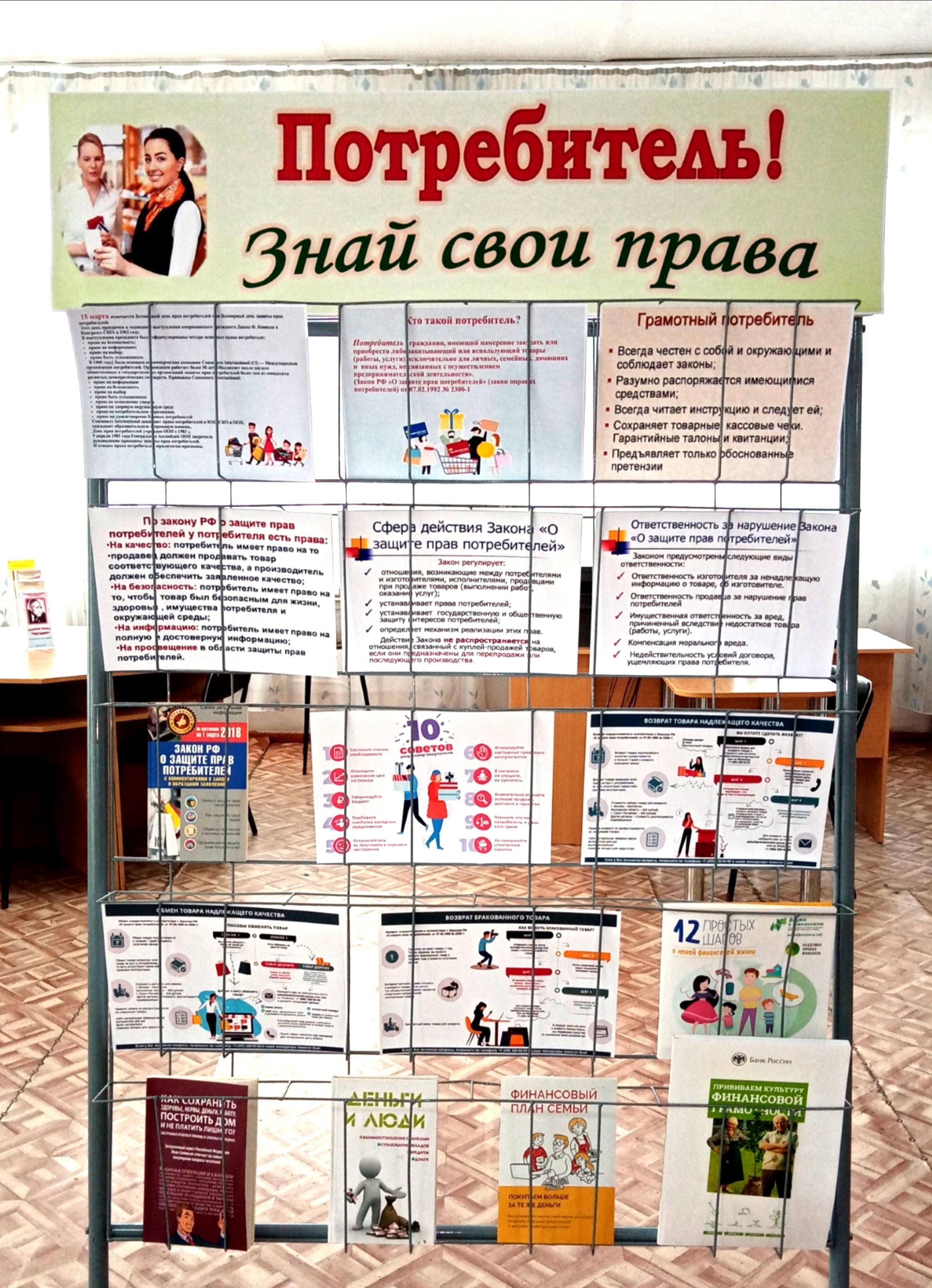 Знать свои права — важно. Каждый человек с момента рождения становится потребителем — сначала товаров, коммунальных и медицинских услуг, потом услуг транспортных, образовательных. Мы покупаем товары, пользуемся услугами строительных и туристических фирм, осуществляем сделки с недвижимостью, платим налоги. И при этом каждый в своей жизни оказывался в ситуации, когда нарушались его права и интересы как потребителя. А чтобы защитить их, необходимо свои права знать. Путь к устойчивому образу жизни — разумное потребление. Вопросам защиты прав потребителей, разумного потребления, финансовой грамотности были посвящены следующие мероприятия: