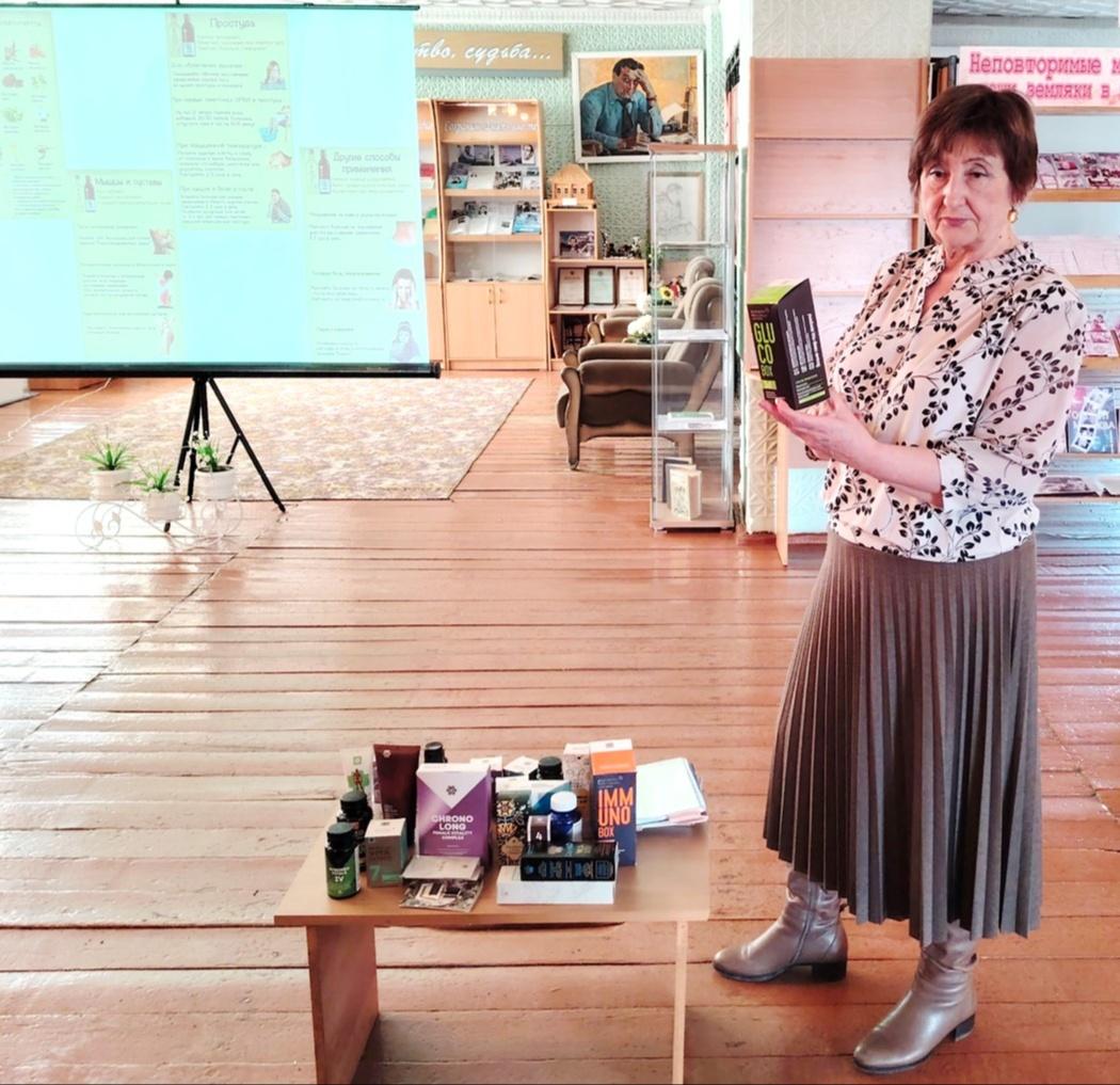 Также ведущая сделала акцент на том, что потребитель должен быть информирован о том, как производятся товары и как они влияют на окружающую среду и общество, должен уметь рационально использовать ресурсы, уделять особое внимание выбору товаров и услуг, которые имеют наименьший отрицательный экологический след, а именно покупать товары с экологическими сертификатами, уменьшать использование одноразовых и пластиковых изделий на примере кампании «Сибирское здоровье». Консультант компании «Сибирское здоровье» Л. Ю. Татаринцева рассказала о том, что компания известна не только на территории России, но и за ее пределами и специализируется на производстве и продаже натуральных продуктов для здоровья и красоты. Ее товары пользуются популярностью как у молодых людей, стремящихся сохранять свою молодость и красоту, так и у более зрелой аудитории, заботящейся о своем здоровье. Очень подробно рассказала обо всех продуктах, предлагаемых компанией, а также поделилась секретами их высокой эффективности. В завершении встречи все гости получили от консультанта компании «Сибирское здоровье» подарки.
