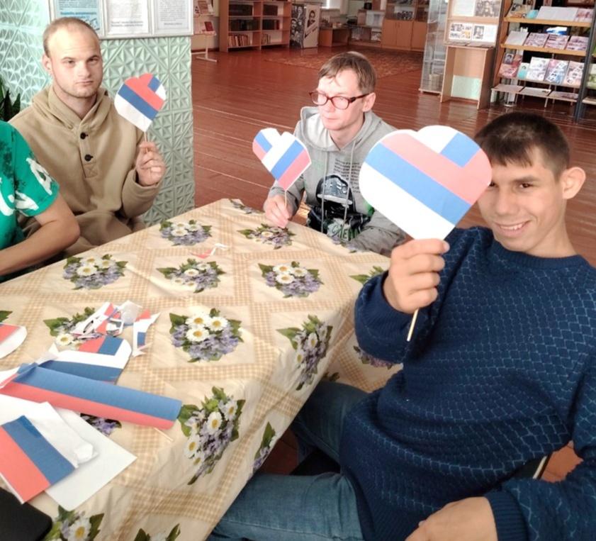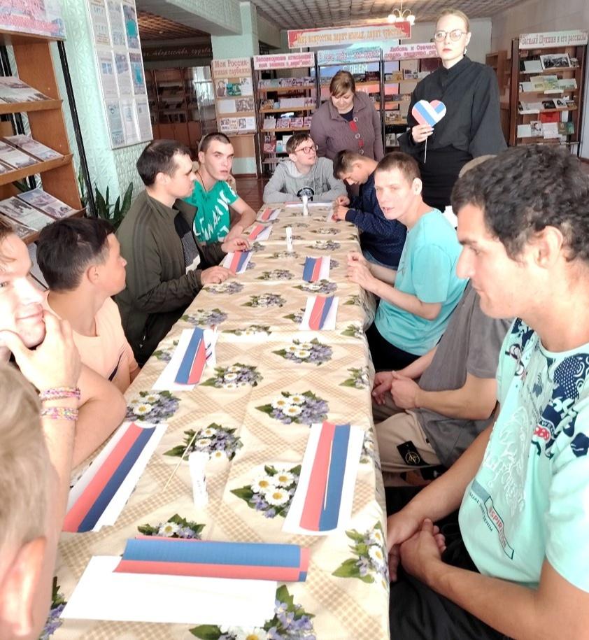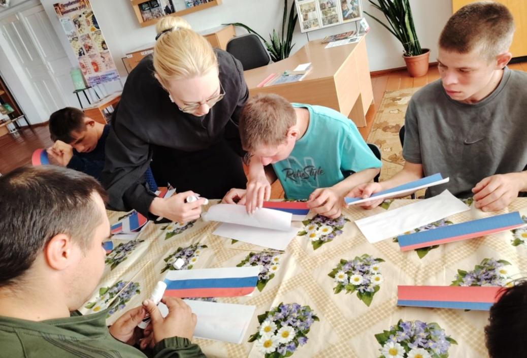 Ежегодно 22 августа в России отмечается День Государственного флага Российской Федерации. День Российского флага — это праздник всех поколений россиян, дань уважения истории великой страны. Трехцветный стяг неразрывно связан со становлением Российского государства, он стал символом военных побед и достижений. Этот праздник вызывает в нас чувство гордости за свою великую страну, за наших соотечественников. Дню рождения Государственного флага Российской Федерации сотрудники нашей библиотеки посвятили историко-познавательный подиум «Главный флаг страны великой», на который были приглашены воспитанники КГБСУСО «Тюменцевского ДПНИ». Они познакомились с историей российского флага, со всеми этапами его становления и развития, узнали, что означают цвета триколора и в каких случаях поднимается флаг Российской Федерации. Мероприятие сопровождалось презентацией «Флаг наш российский, овеянный славой» и видеороликами: «О флаге России», «Флаг моего государства», «Российский флаг». Завершилось мероприятие мастер-классом «России славный триколор», в ходе которого участники мероприятия сделали открытки в виде сердечка в цветах российского флага из цветной бумаги в технике «аппликация» и закрепили полученную информацию о том, что три цвета флага имеют особое значение: белый символизирует мир и чистоту, синий — веру и духовность, красный — силу и готовность защищать родину. Через творчество молодые люди выразили свою любовь и уважение к родине. Поделки, созданные своими руками, передают положительные эмоции и чувства. Эти открытки станут отличным подарком для близких и друзей.