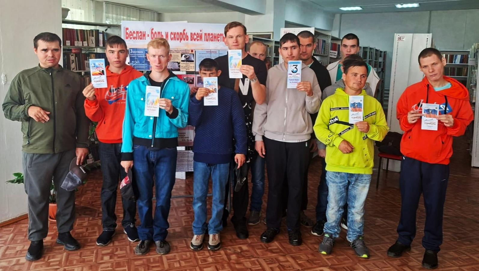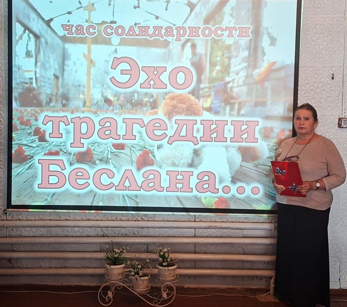 Ежегодно 3 сентября Россия отмечает День солидарности в борьбе с терроризмом. Этот день приурочен к трагическим событиям, произошедшим в первые сентябрьские дни 2004 года в городе Беслане. Вспоминая жертв террористических актов, мы должны быть едины в своем намерении всеми силами противостоять терроризму, чтобы не допустить разрастания этого преступного безумия. Об этом трагическом событии сотрудники библиотеки рассказали воспитанникам КГБСУСО «Тюменцевский ДПНИ» на часе солидарности «Эхо трагедии Беслана». В ходе мероприятия ребята узнали о трагических событиях трех дней, произошедшим 1-3 сентября 2004 года в городе Беслане, когда в результате террористического акта погибли более 300 человек, в основном дети и женщины, об истории появления памятной даты, о том, что террористы захватили школу и удерживали детей и взрослых в заложниках, о стойкости и мужестве людей, оказавшихся в эпицентре трагедии, о боли и скорби, которые до сих пор живут в сердцах тех, кто потерял своих близких. В ходе мероприятия звучали стихи и песни, посвященные этой трагедии, заставляя присутствующих задуматься о ценности жизни и о том, что беда может постучаться в любой дом. Были показаны видеоматериалы об этой трагедии. Мероприятие сопровождалось презентацией «Беслан: сентябрь навсегда»