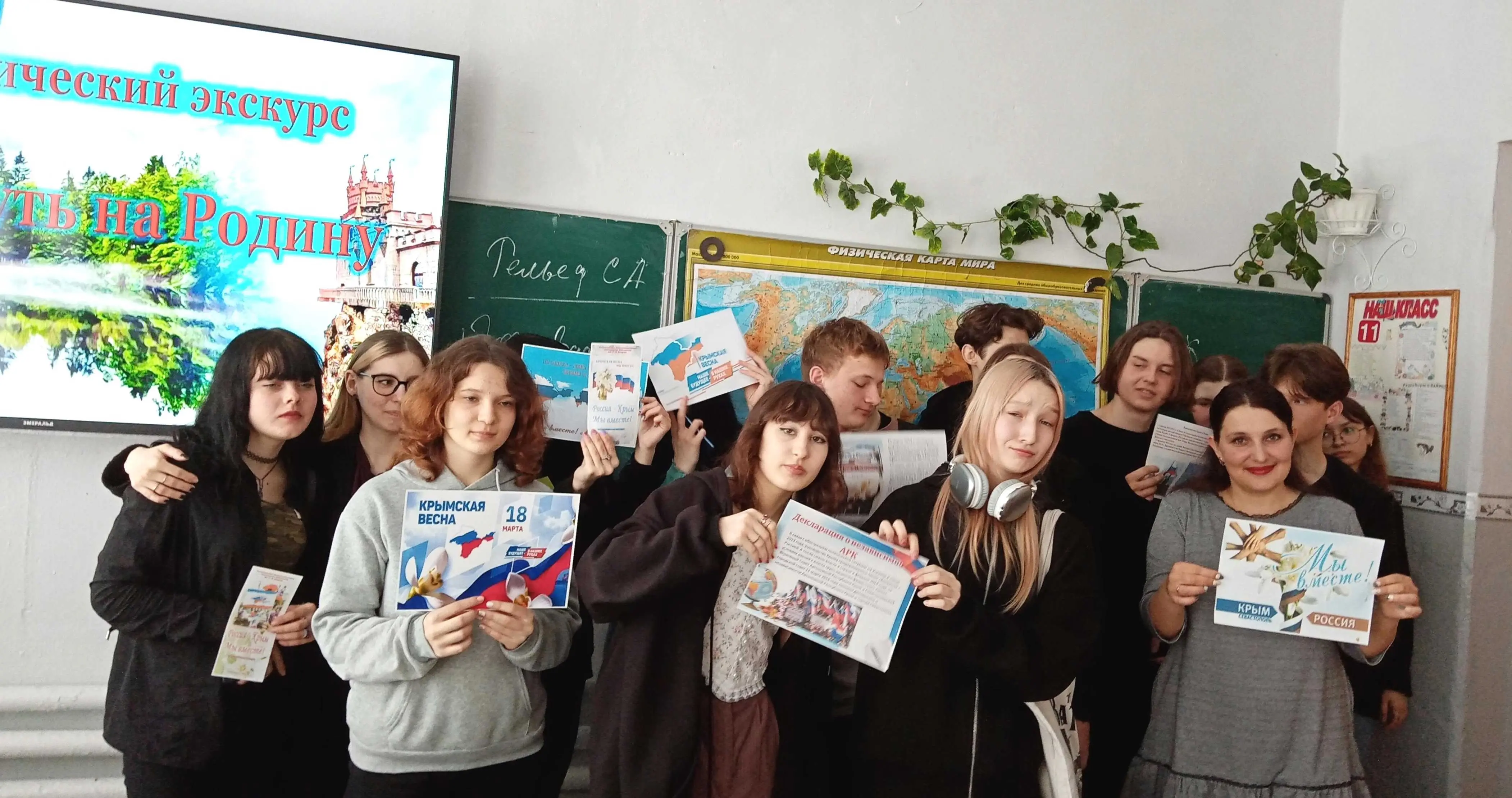 Вниманию учащихся 10 – 11 классов Тюменцевской СОШ был представлен исторический экскурс «Крым. Путь на Родину». Ребята с интересом слушали рассказ об истории Крыма, о событиях, произошедших в марте 2014 года, о достопримечательностях и природе полуострова.