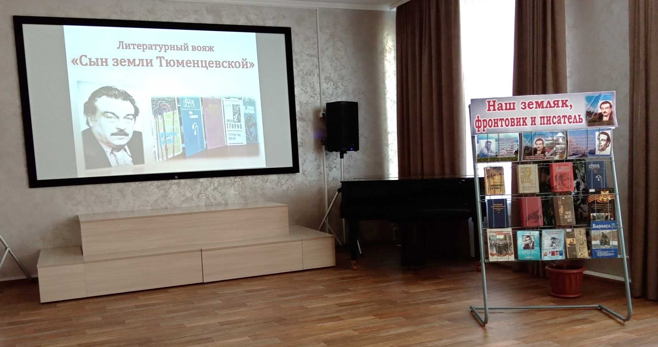 Более ярким и зрелищным ее рассказ делали видеофильм «Я не случайный гость земли родной», видеоролики: «Жизнь его песни достойна», «Георгию Егорову посвящается...». Дополнительная информация о писателе, о его творческой деятельности была представлена на фотодокументальной выставке «Наш земляк, фронтовик и писатель».