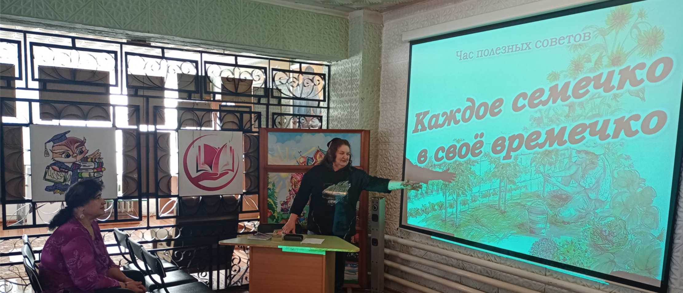 Ведь даже небольшой земельный участок, обработанный умело и своевременно, может принести хороший урожай и радовать цветением клумб с ранней весны до поздней осени. Поэтому, сотрудники нашей библиотеки, заблаговременно начали готовить жителей села к весенним работам на приусадебном участке, организовав ярмарку полезных советов «Каждое семечко в своё времечко». Ведущая мероприятия — ученый агроном Вера Николаевна Мухина поделилась секретами выращивания крепкой, здоровой рассады перцев, томатов и огурцов, дала советы оптимальных сроков посадки, порекомендовала, как провести подготовку семян к посадке. В ходе встречи садоводы и огородники – любители получили ответы на многие вопросы, информацию о различных видах овощей, цветов, ягодных кустарников и плодовых деревьев, которые наиболее часто выращиваются на приусадебных участках. Особое внимание было уделено уходу за насаждениями, обработке и удобрению почвы, секретам выращивания плодовых и овощных растений, и получения урожай богатого урожая.