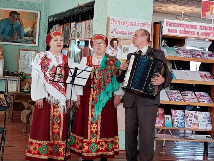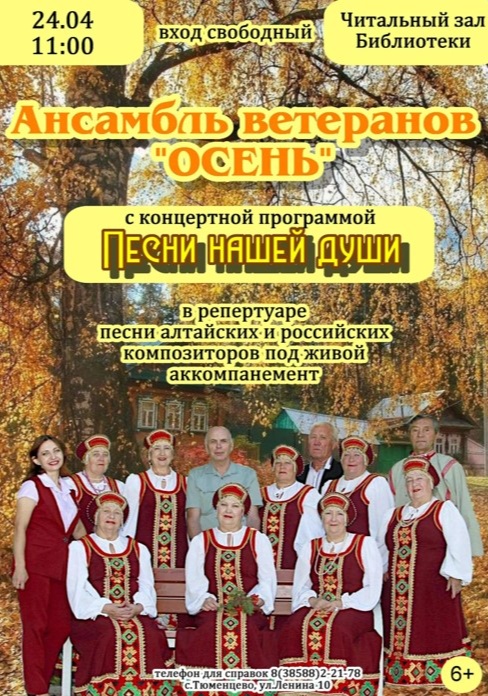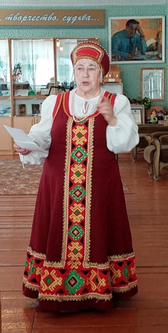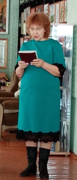 Краеведческий вечер – респект познакомил жителей нашего села с творчеством самодеятельных поэтов и замечательными песнями хранителей творческих традиций — народным ансамблем ветеранов «Осень». Творческий коллектив щедро дарил гостям мероприятия яркие и красивые народные песни в музыкальном блоке «Песни нашей души». Вела программу руководитель ансамбля Елена Баклыкова. В этот день, гостей библиотеки радовали песни о России, о родине, задушевные народные песни алтайских и российских композиторов.
